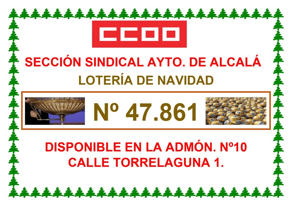 Compañeras y compañeros, como todos los años, ya están a la venta los décimos del número de lotería de nuestra Sección para el próximo Sorteo de Navidad.